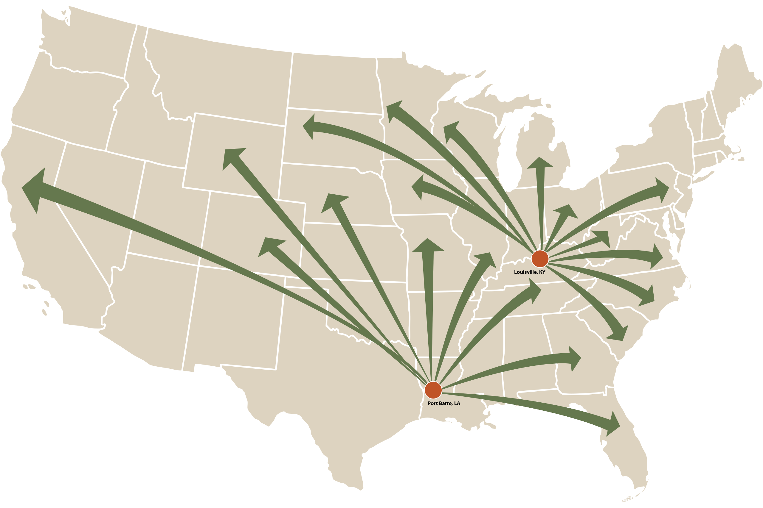 Golden Hill Ingredients has proudly served the food industry for over 23 years, delivering safe, high-quality ingredients sourced from around the world. With full-service warehouses in Louisville, Kentucky, and Port Barre, Louisiana, we’re strategically positioned to meet the needs of our customers with speed, consistency, and reliability.